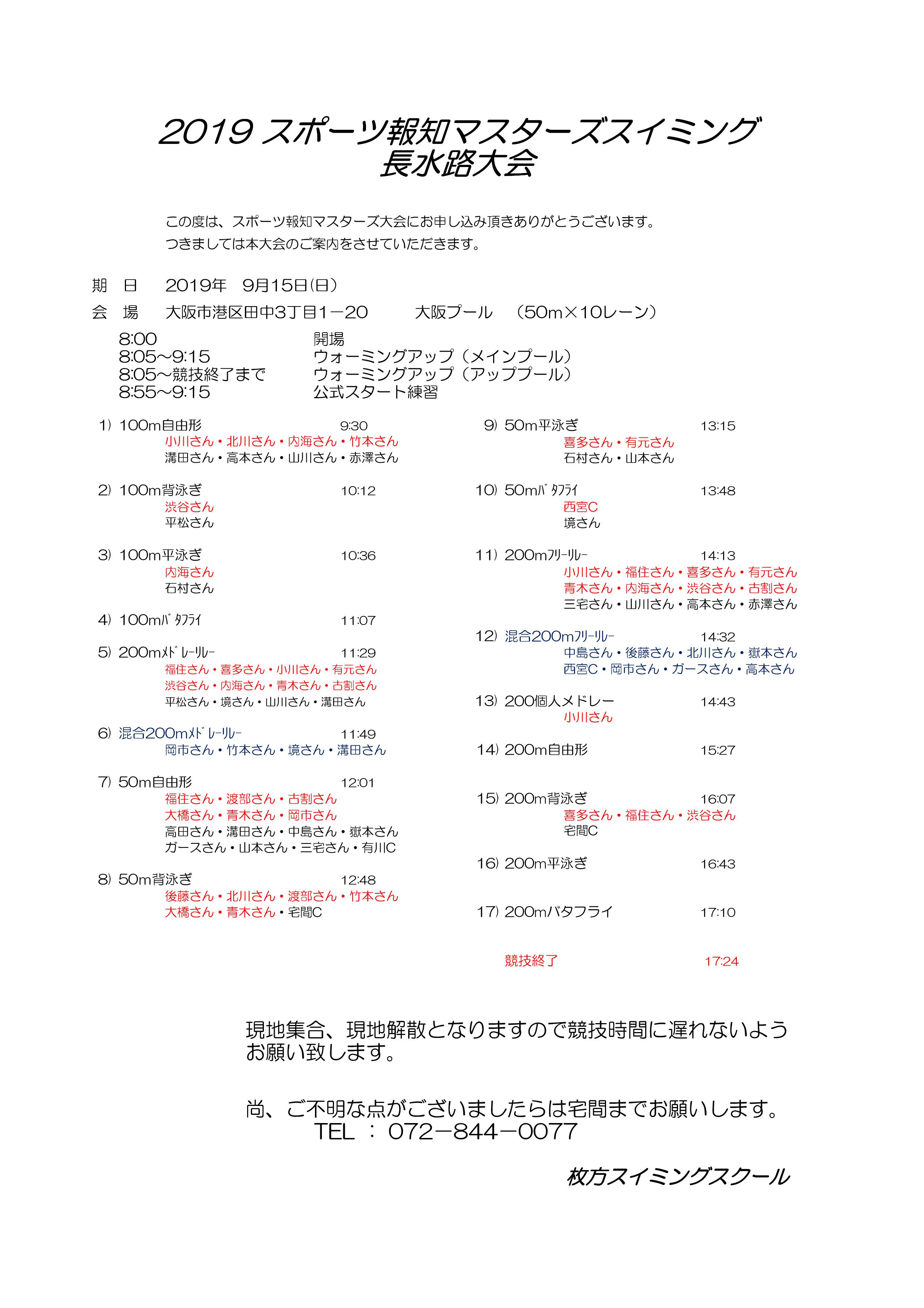 5/1・2 大阪短水路マスターズについて